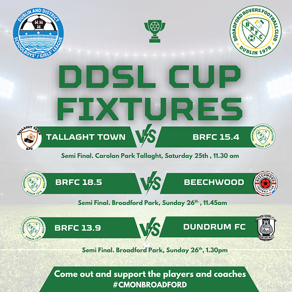 Best of luck to our 3 teams in the DDSL Grassroots cup semi-finals this weekend.